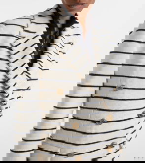 A lightweight, breathable linen blend makes Frame's white blazer ideal for the warmer months. Patterned with subtle pinstripes, it's cut for a relaxed fit with notch lapels and cropped sleeves. Add a T-shirt and the matching shorts for an unstudied air.
