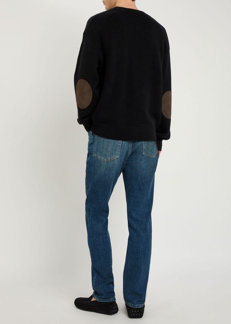 • Crew-neck, suede patches at sleeves, ribbed trims