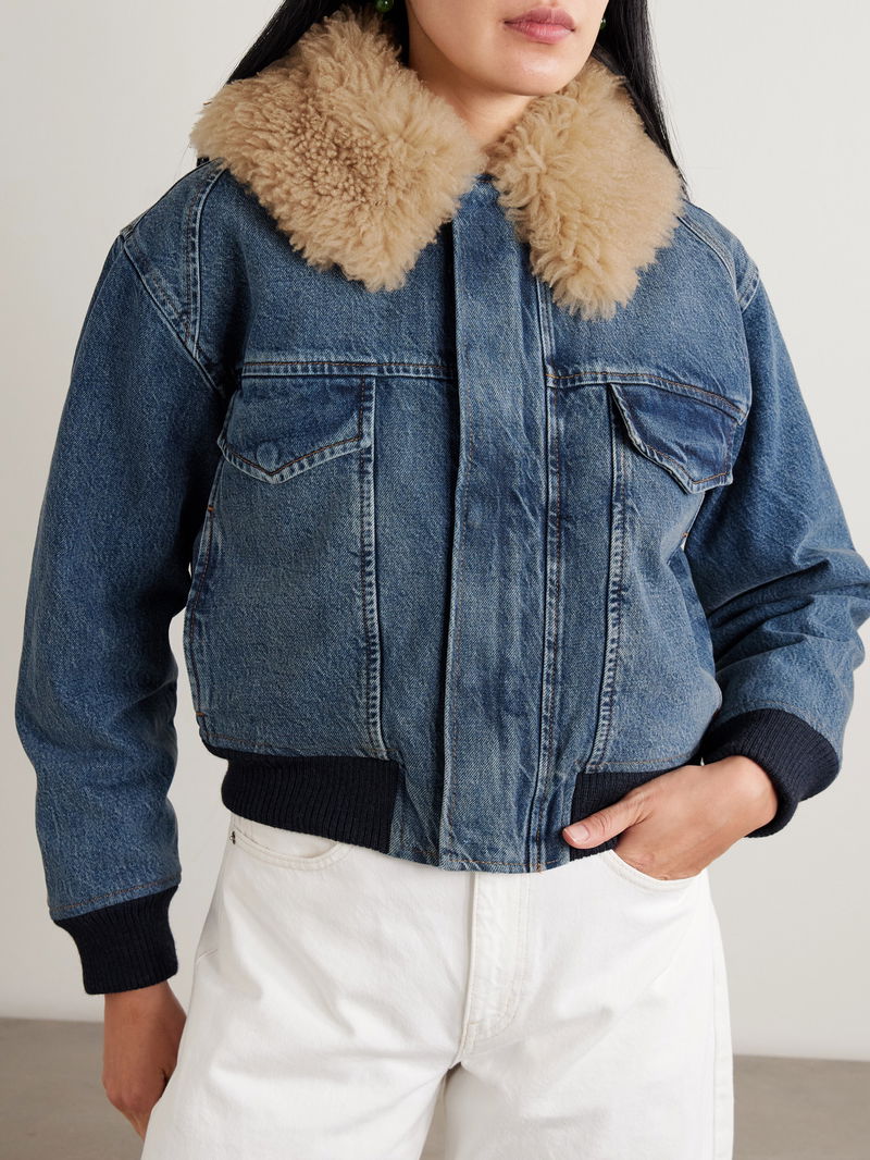 You'll wish for cooler weather just for the excuse to bundle up in FRAME's jacket. Taking cues from aviation classics reinterpreted for today, it's cut from non-stretch denim with an elasticated hem and cuffs. The shearling collar feels so cozy.