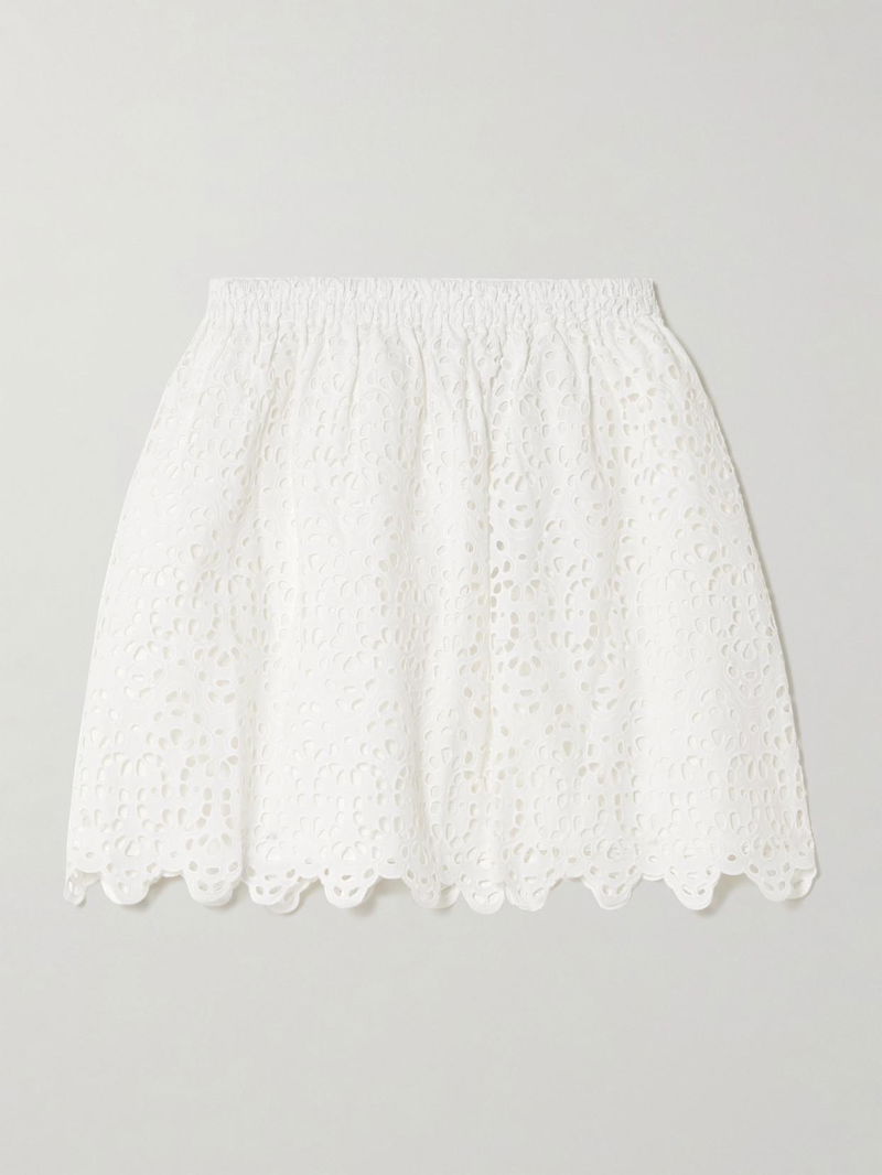 FRAME's airy 'The Deco' skirt perfectly coordinates with the shirt of the same name, but it also looks chic with a simple top. It's made from broderie anglaise cotton and has a pretty scalloped hem.
