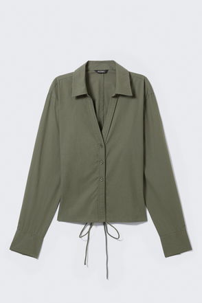 With a button-up neck and short sleeves, it is made from comfortable and lightweight lyocell.