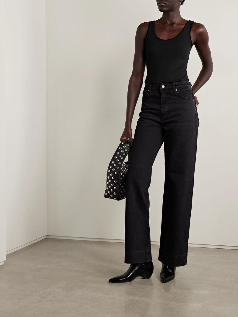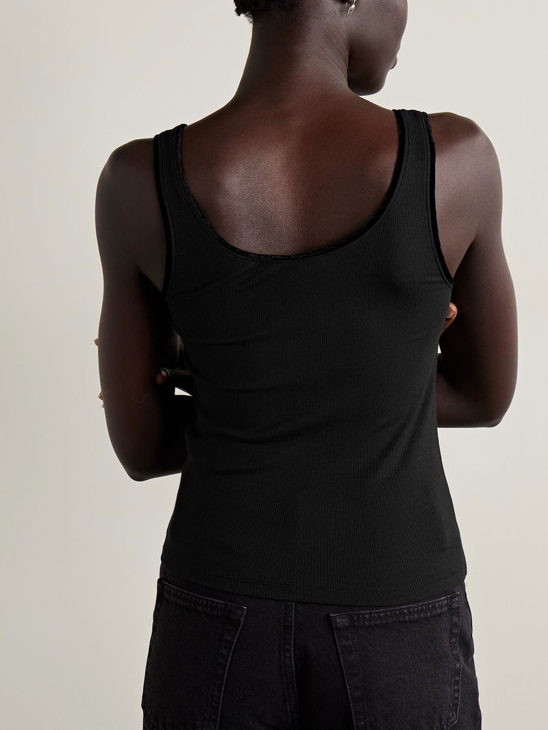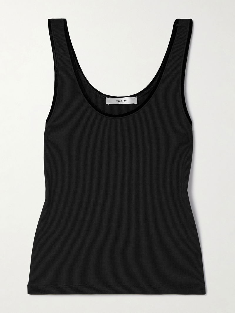FRAME's tank is a great base layer. It's rib-knitted from soft stretch-modal and has tonal velvet trims along the scooped neckline. Tuck it into everything from jeans to leather pants.