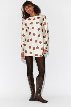 A new shape for the mini, this kimono-inspired dress is featured in an accordion-pleated fabrication with exaggerated sleeves and dramatic, drawstring A-line waist detail.