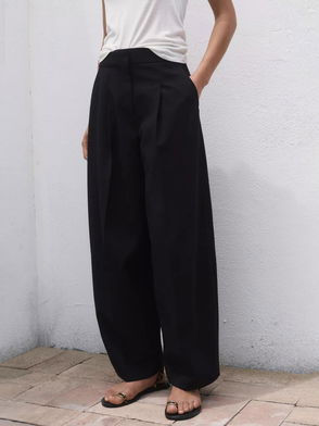 So cool and chic pants designed in a lightweight, printed fabrication with elastic waistband and ankle cuffs designed in a balloon silhouette for exaggerated shape and dimension.