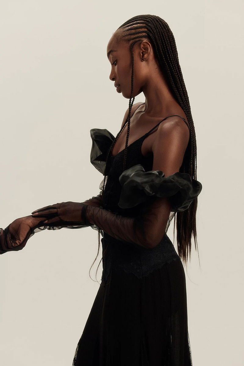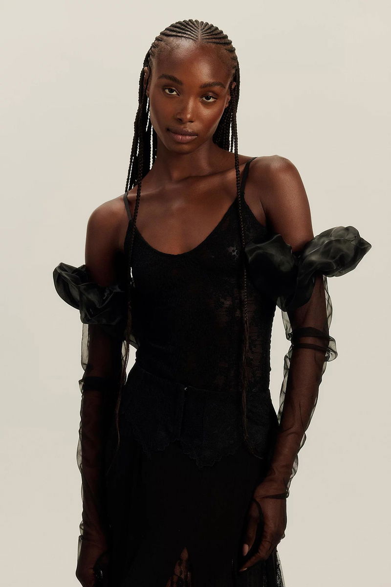 So fun and fashionable, these stand-out gloves are featured in a longline, sheer style with defined ruffle detailing at top for the most fabulous finishing touch.