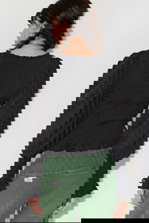 Sheer perfection, this timeless blouse is featured in a classic billowy design with vintage-inspired cinched neckline for added dimension.