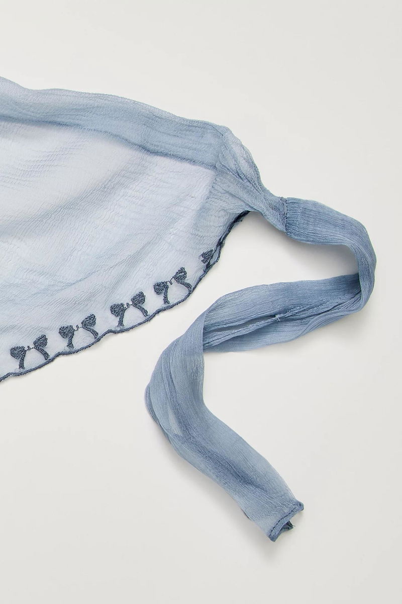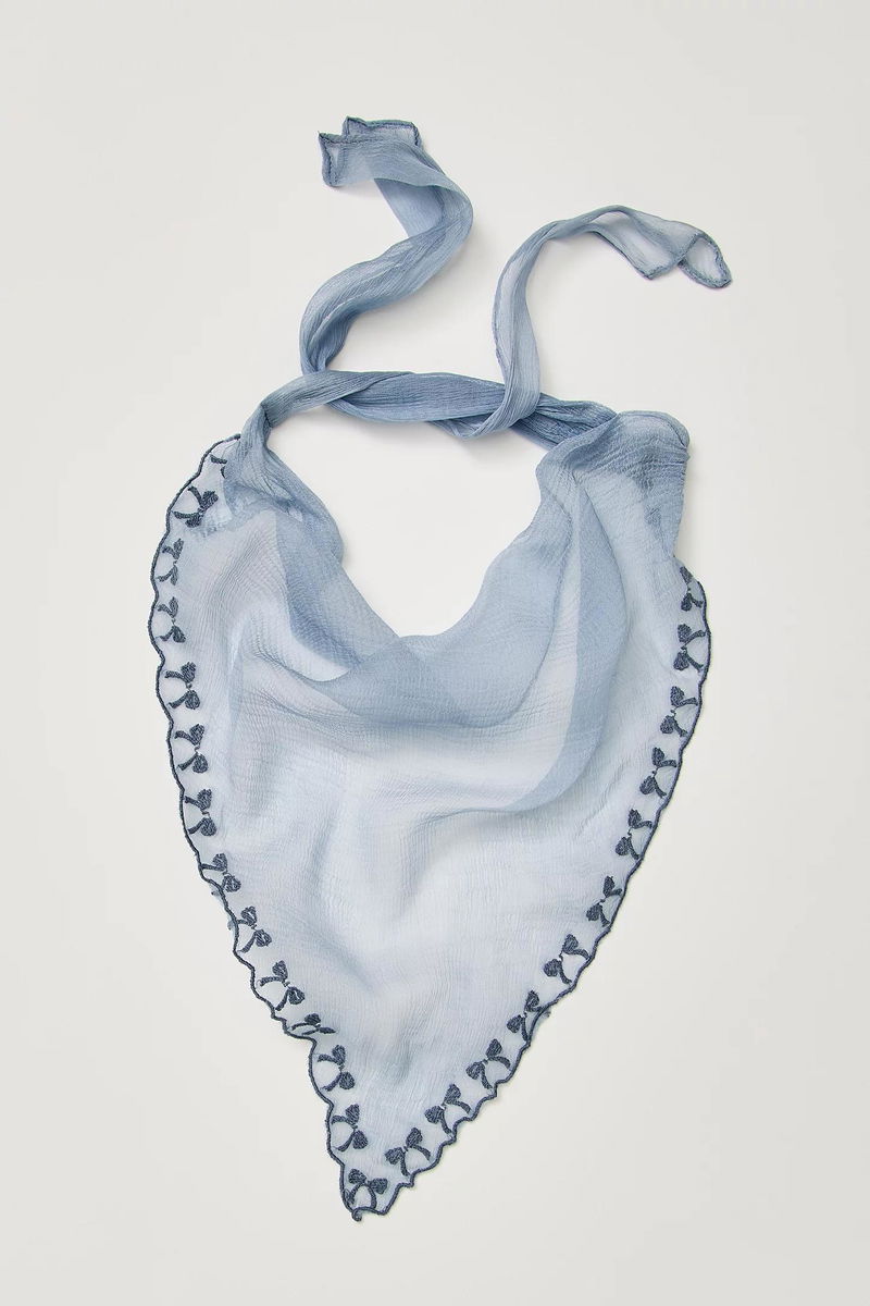 Add a forever classic finish to every hairstyle with this stunning hair scarf featured in a sheer design and staple triangle style with bow embroidery at the border for the sweetest touch.