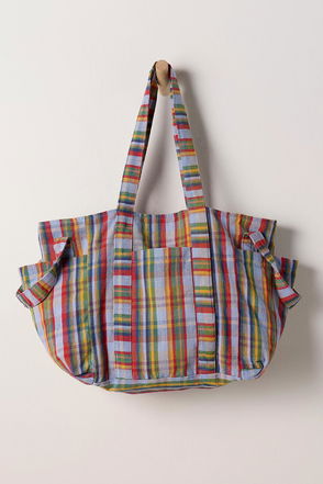 Just as fashionable as it is functional, this effortless tote bag is featured in a classic canvas fabrication with defined pockets, multiple straps, and contrast stripe detailing for the perfect dimensional finish.