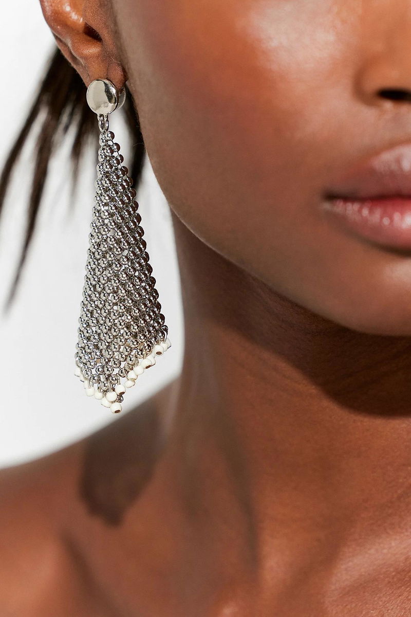 The perfect stand-out pair to add to your earring rotation, these stunning dangles are featured in a metal mesh design with bead detailing at bottom trim for the ideal dimensional finish.