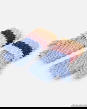 Crafted from 100% responsible wool, these fingerless mittens blend cozy comfort with standout style in rich chocolate stripes and mustard embroidery.