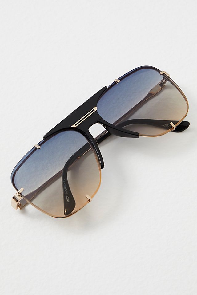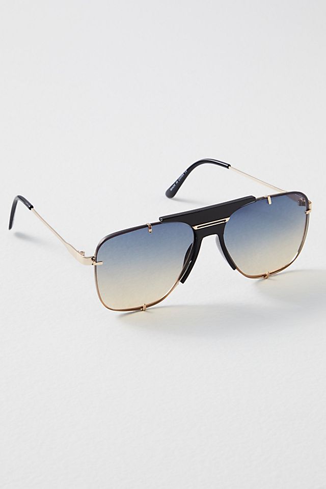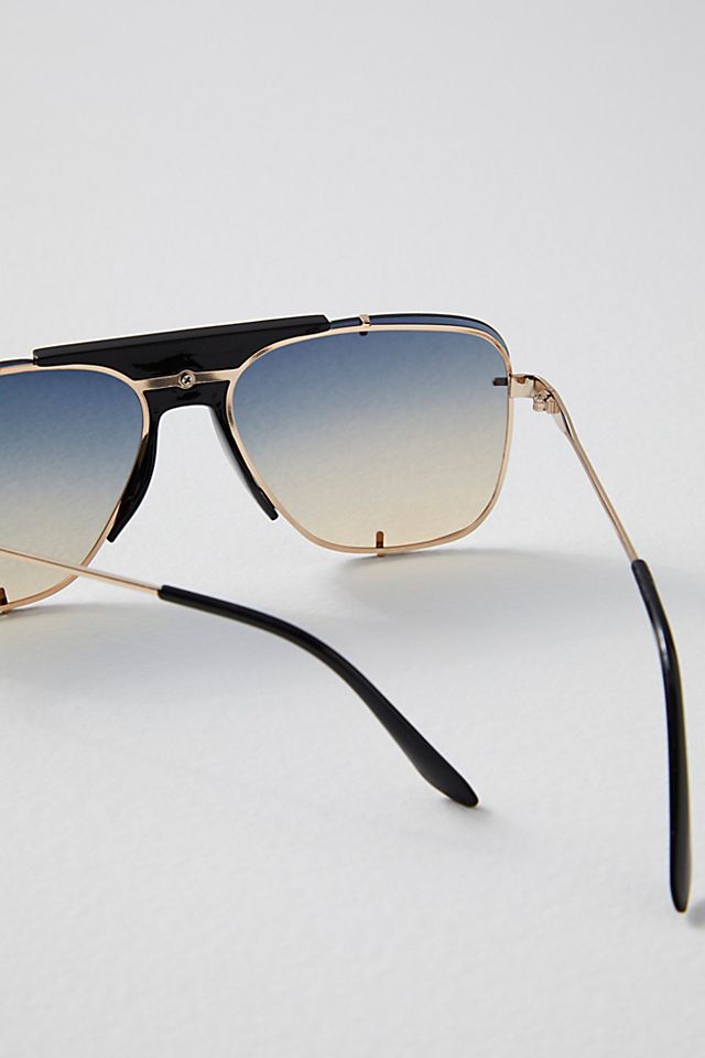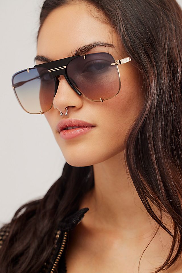 Adding a cool and contemporary touch to a timeless classic, these stunning sunnies are featured in a staple aviator silhouette with ombre-style lenses, defined nose bridge, and exaggerated metal prongs for an added special touch.