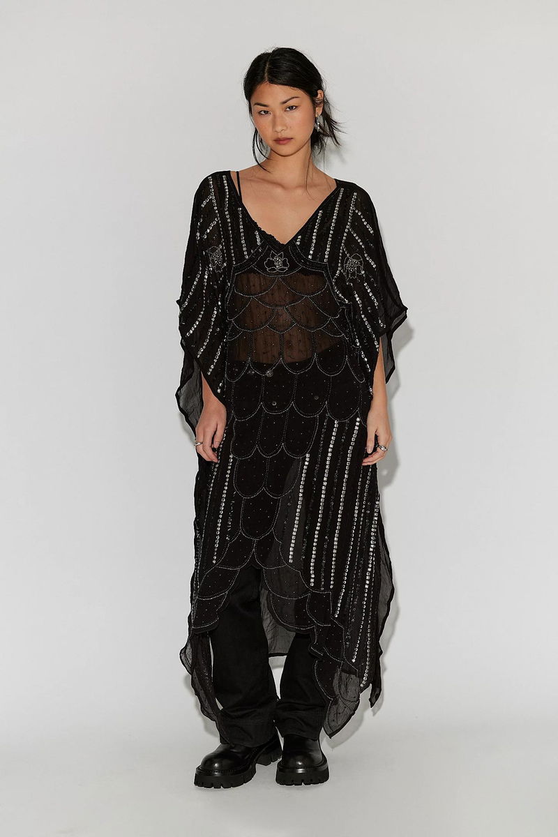 Add the coolest layer to every look with this stand-out duster featured in a drapey, sheer style with defined sequin detailing throughout for a special finishing touch.