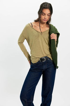Not your average tee, this slouchy top is featured in a soft fabrication and short-sleeve style with sequin detail at the hem and a deep V-neckline.