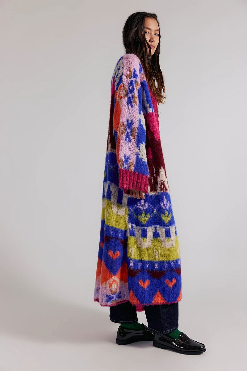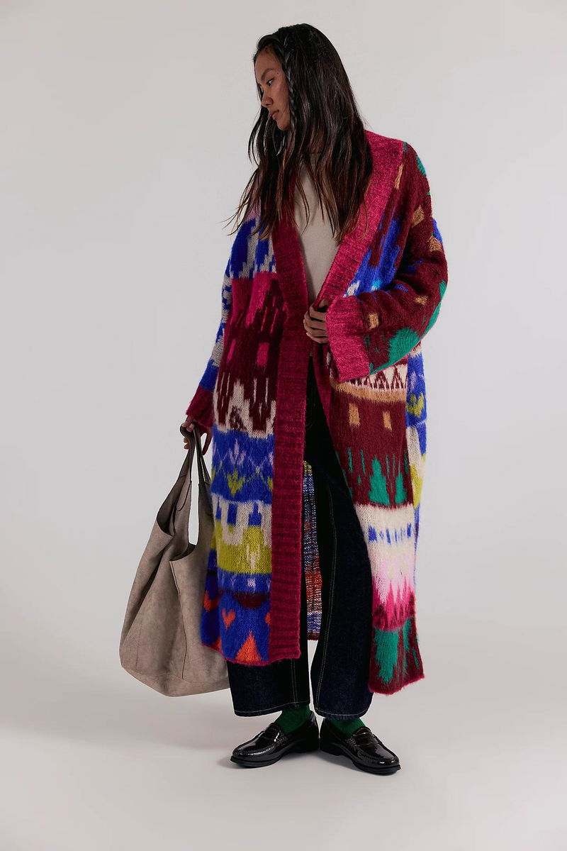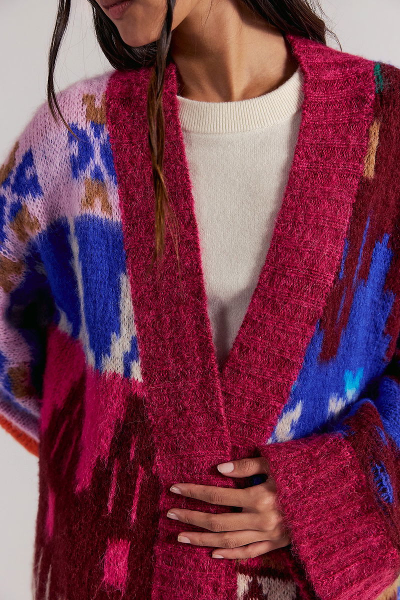 The definition of cozy, this charming cardi features a soft knit fabrication, a super oversized silhouette, and an easy-to-wear open front closure for the perfect throw-on-the-go design.