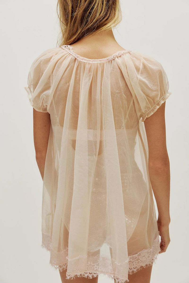 Run the evening in this two-piece bodysuit from Intimately, featuring a gorgeous shimmering bodysuit and a sheer negligee, or nightgown, for a layered, intricate style with multiple ways to wear.
