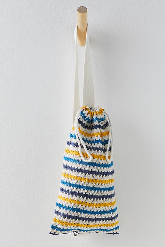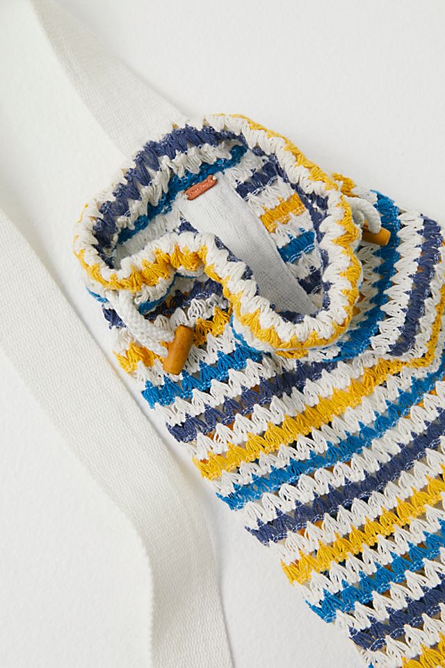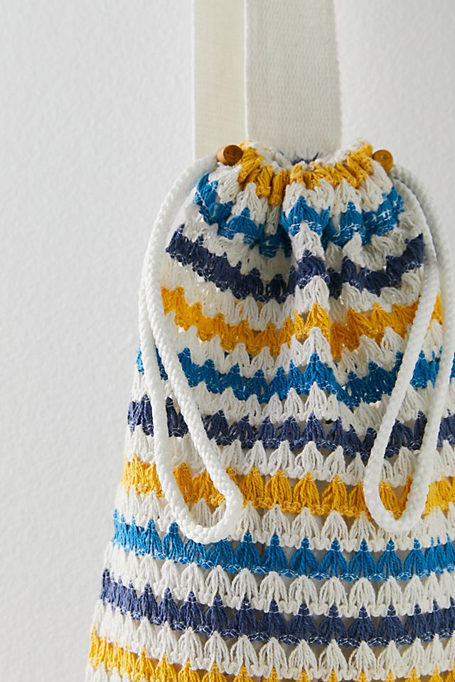 So cool in crochet, this roomy sling is featured in a drawstring style with a colorful woven pattern and adjustable shoulder strap. The perfect accompaniment for sunny day walks or concerts.