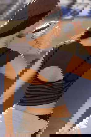 The perfect baby tee, this essential top is featured in a ribbed fabrication and slim-fitting silhouette with a crew neckline and thumbhole detailing