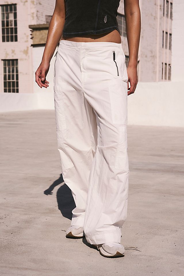 So slouchy and seriously sporty, these cargo-inspired pants are featured in a low-rise fit and cool cotton fabrication with zippered pockets. Slouchy, relaxed fit; low-rise, full-length legs. Durable cotton-blend, classic pull-on style, zippered pockets at front, oversized pockets at legs, smocked elastic waistband. These laidback pants are perfect for pulling on pre- or post-workout.
