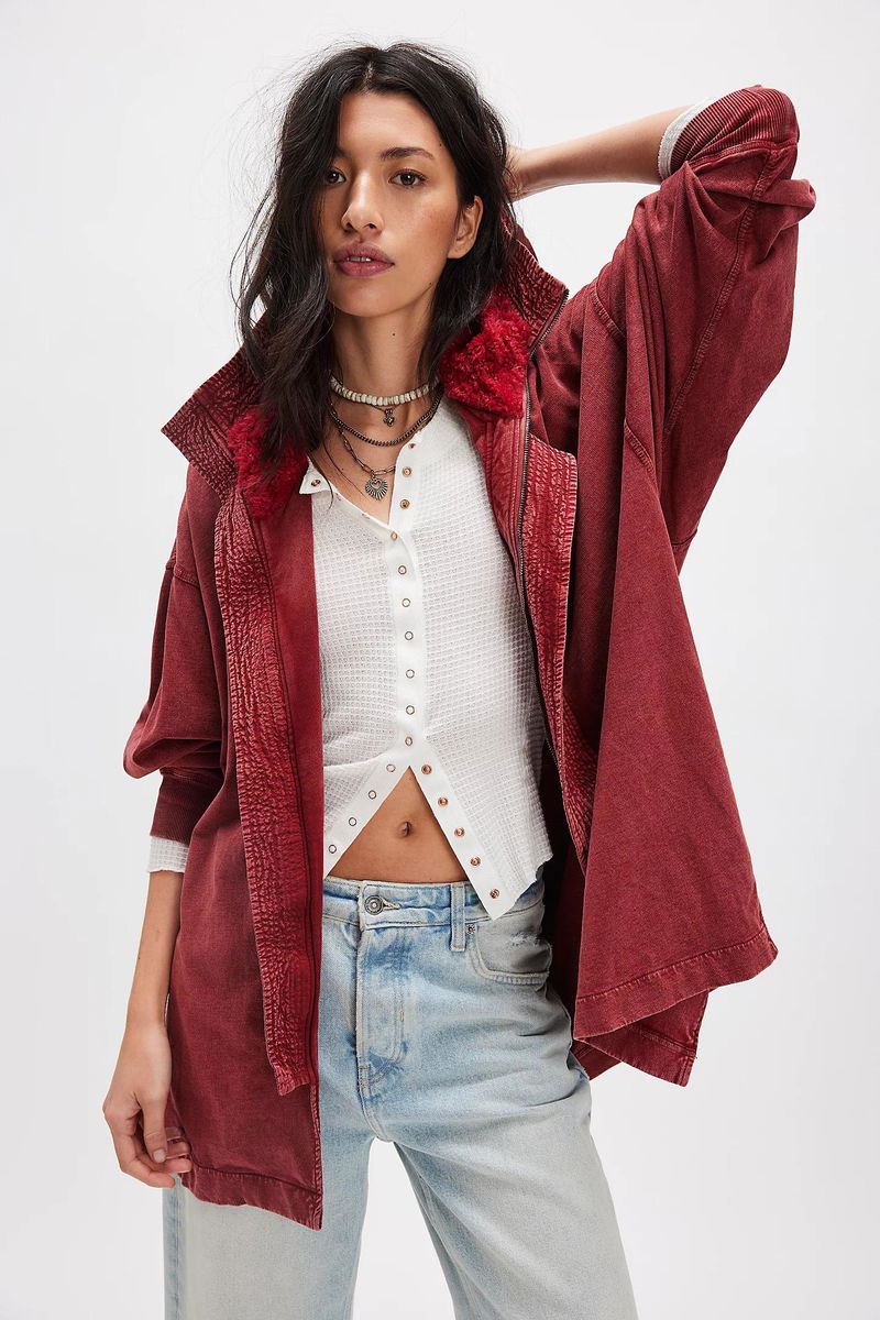 Forever cozy and so essential, this jacket from our FP One collection features a super soft cotton fabrication, a seriously slouchy, oversized fit, and a faux fur-lined hoodie for an elevated look.
