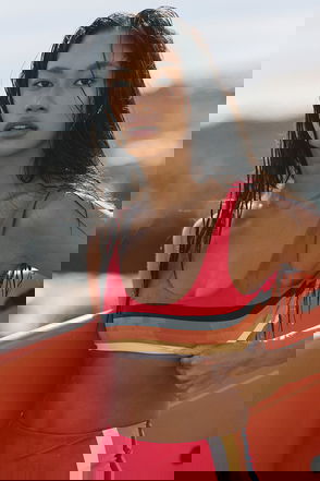 Printed to perfection in the sweetest ruffle-adorned style, this stunning bikini top is featured in a smocked fabrication with tie-adorned shoulder straps for the ideal femme finish. Classic, V-neck style. Smocked fabrication, ruffle-adorned overlay, tie closures at shoulder straps, pull-on style. The ideal piece to add a little something special to your seasonal swim rotation. This product was consciously made to reduce our footprint and supports our mission to be a little bit better every day.