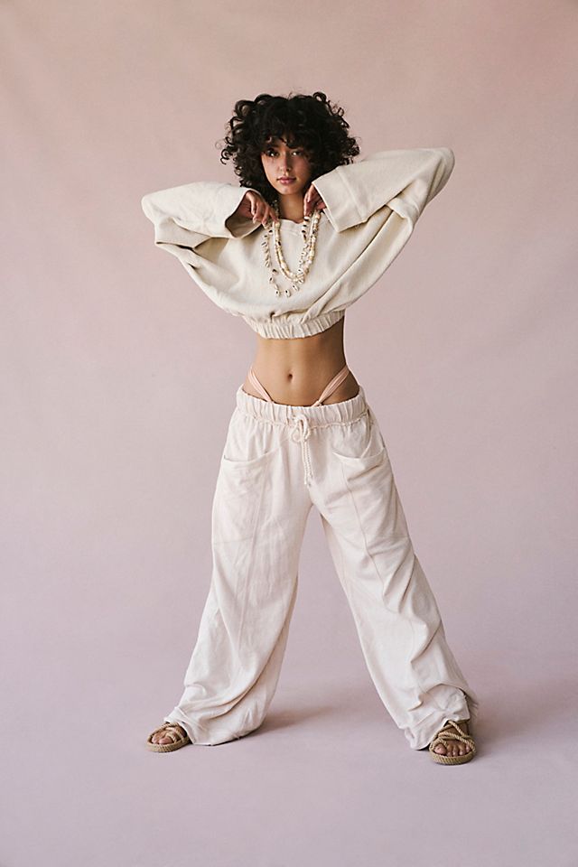 The perfect shore-to-street pants from our free-est collection, this billowy pair will be your go-to from this season to the next. High-rise, exaggerated wide-leg silhouette. Pull-on design, drawstring waistband, dropped pouch pockets, back cinch detail. So cozy and just as chic, throw these over your swimsuit or pair them with your favorite tee for endless ways to wear.