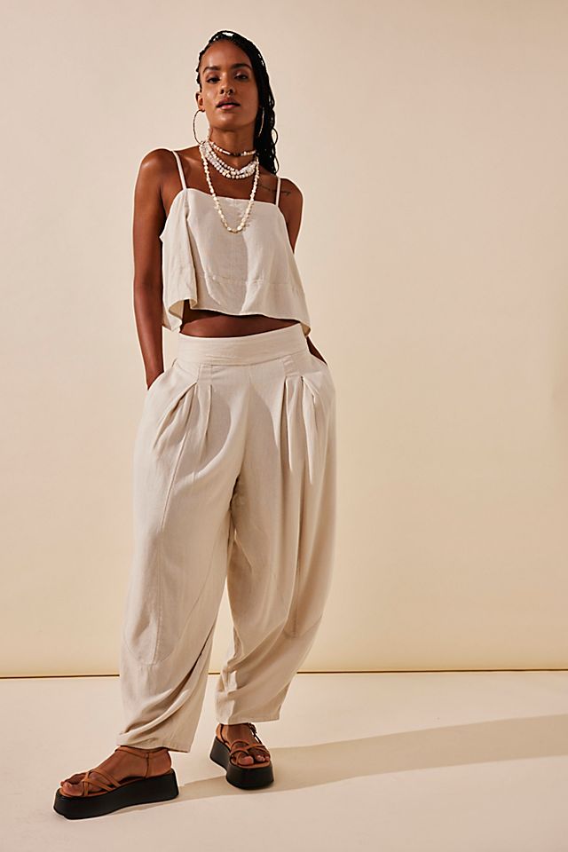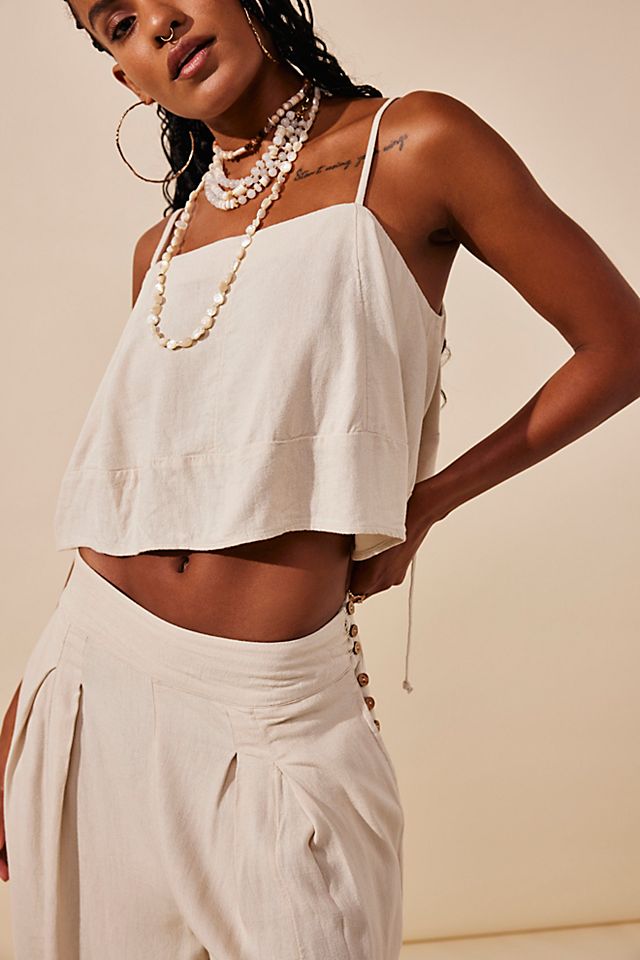 The perfect instant outfit from the free-est collection, featuring a tank inspired by our Struttin’ dress collection and coordinating trousers.