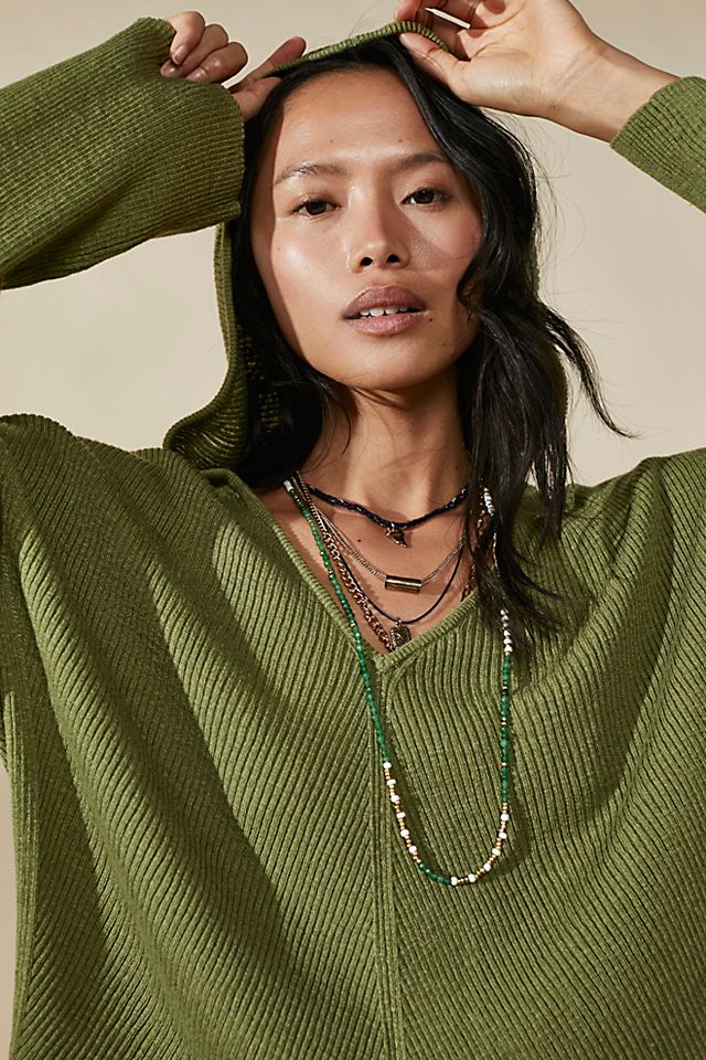 Your coziest instant outfit yet, this essential set from the free-est collection will be your go-to all season long. Top: Slouchy, oversized silhouette; Shorts: High-rise, relaxed fit. Top: V-neckline with hooded feature, ribbed sweater knit, wide sleeves; Shorts: Drawstring waistband, pull-on design, ribbed detailing. So easy over your swimsuit or for cozying up in the cooler months, this set has endless ways to wear.