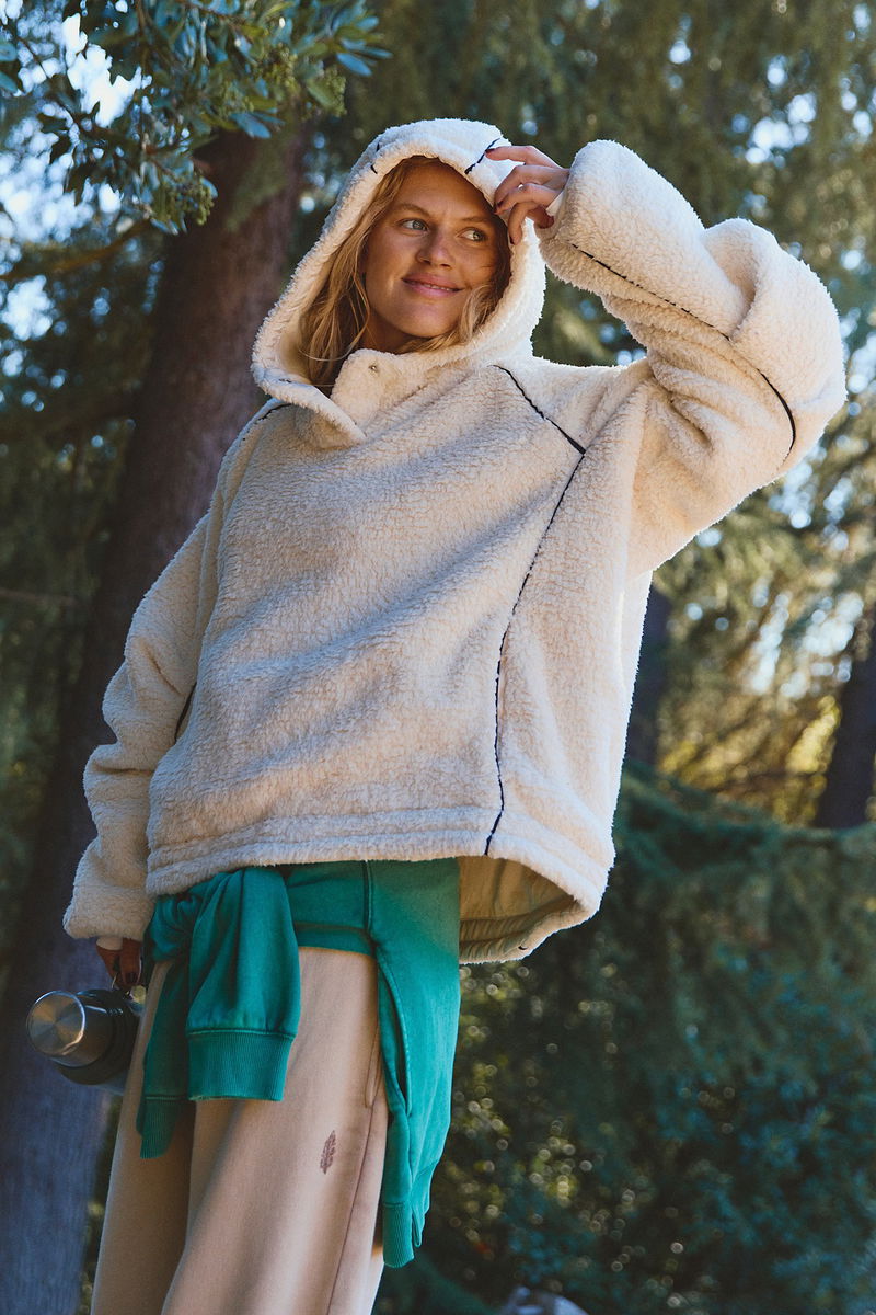 Classic cozy meets casual cool in this fleece hoodie, cut in a pullover silhouette with a relaxed, boxy fit. Warm fleece fabrication is topped with a button-placket and pullover hood.
