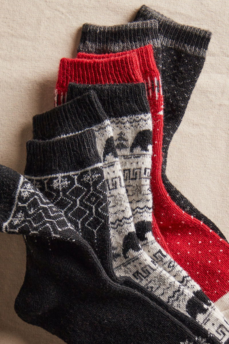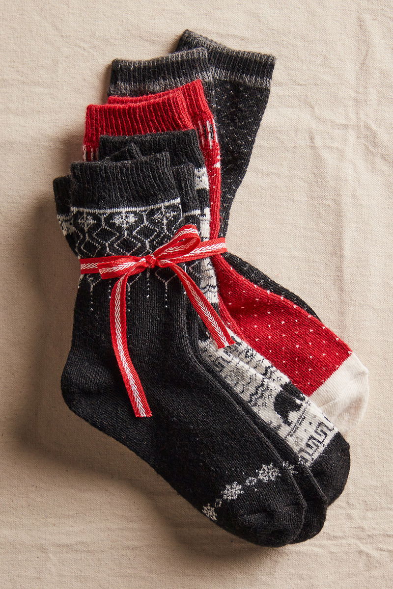 Great as a stocking stuffer or for gracing your own seasonal accessories collection, this set of 4 socks features holiday-printed crew socks in a soft, stretchy knit fabrication with ribbed detailing at top for added hold and dimension.