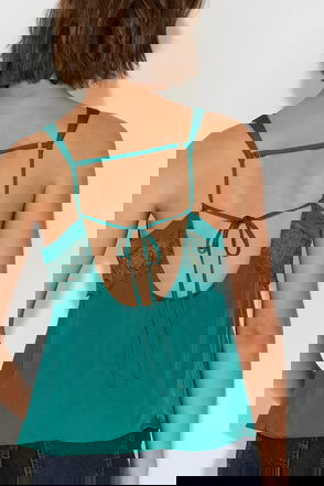 It’s all in the details with this delicate cami from Intimately, featured in a micro-pleated silky fabrication with intricate straps and satiny tie-front closures. Fitted, cropped. Micro-pleated silky fabrication, straight neckline, open-front design, satiny tie closures, intricate skinny straps. Pair with jeans and kitten heels for a chic moment.