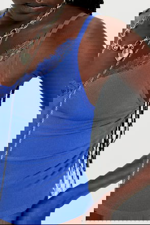 A classic silhouette has re-entered the chat–and it also comes in print. This cropped cami from Intimately is featured in a comfy cotton blend with a scoop neckline, skinny straps, and contrast seaming.