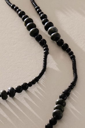 Adorned with coin charms and a semi-precious stone pendant, this long necklace adds the perfect finishing touch to any look. Long metal chain adorned with engraved coins, oval semi-precious stone pendant, lobster clasp closure. Wear as a solo statement or paired with shorter necklaces for a collected stack.