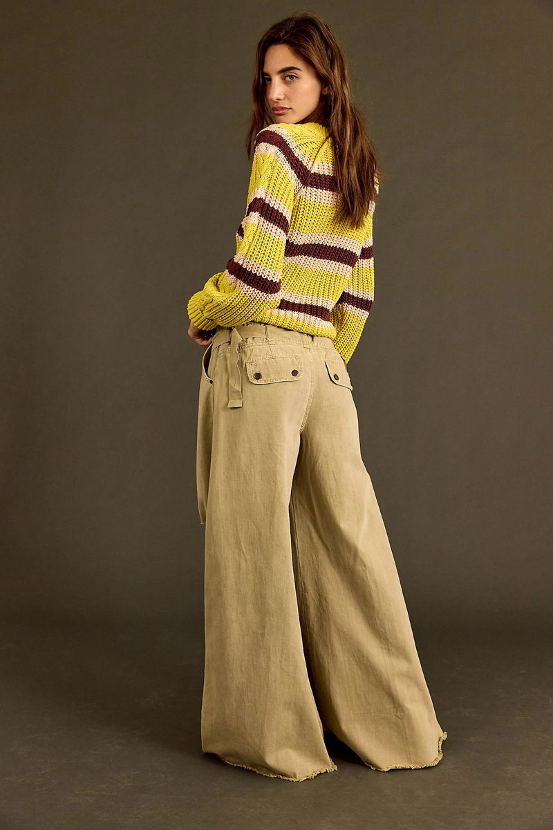 The perfect distressed pair for any drawer, these chino pants feature an extremely wide-leg design, an adjustable drawcord waist, and a slouchy cotton fabrication.
