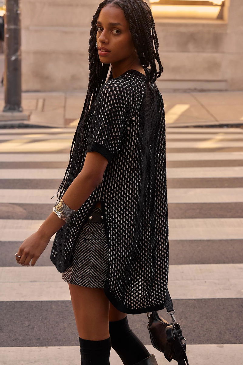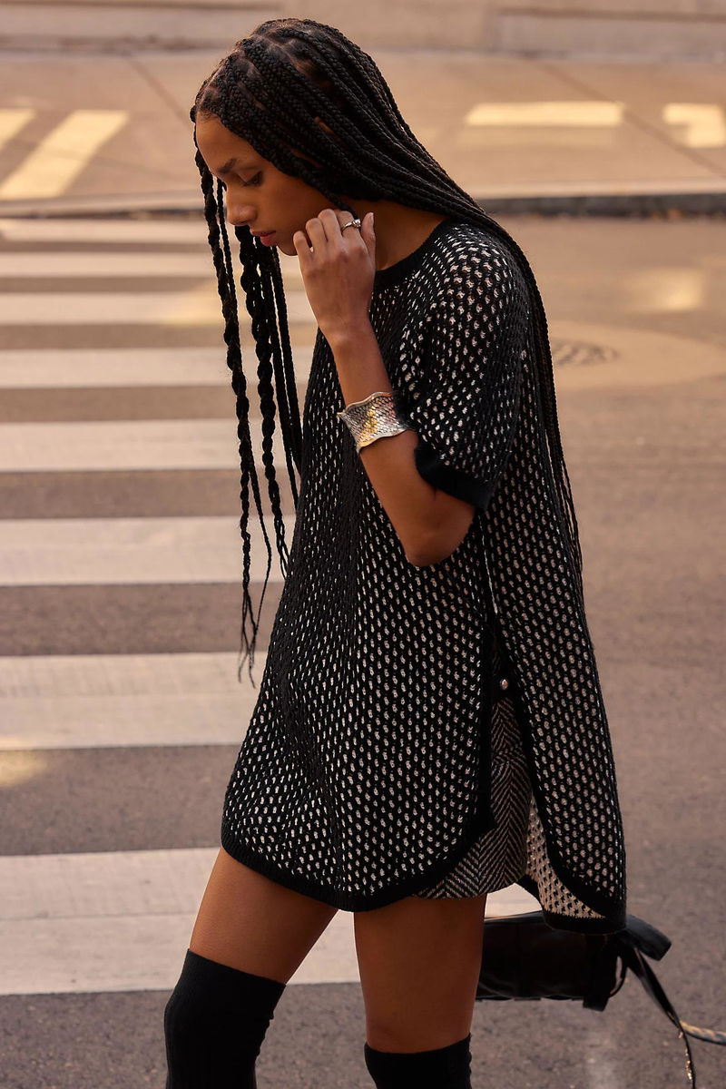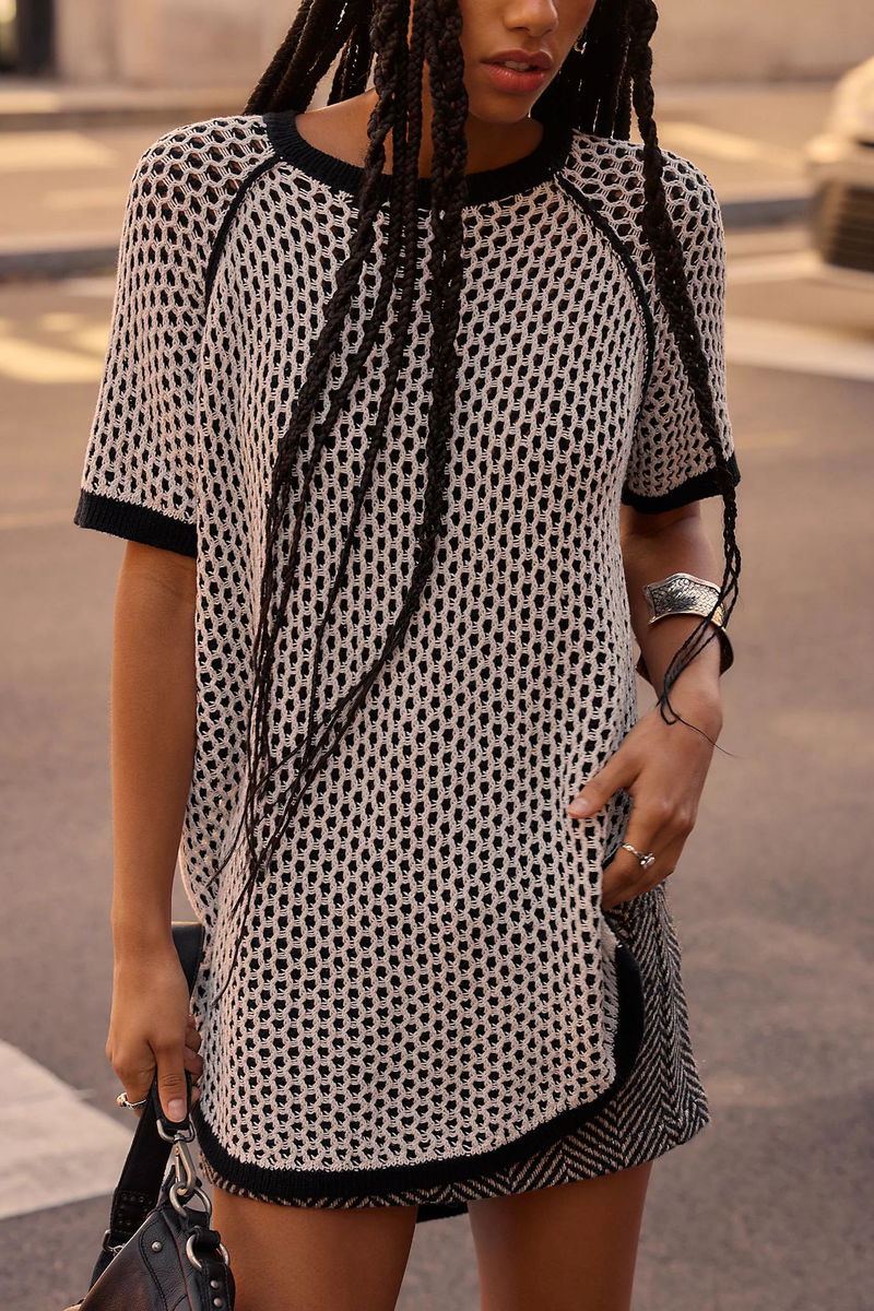 Two is better than one with this reversible tunic from free-est, featured in an oversized tee style with a rounded vented hem and contrasting textured patterns.