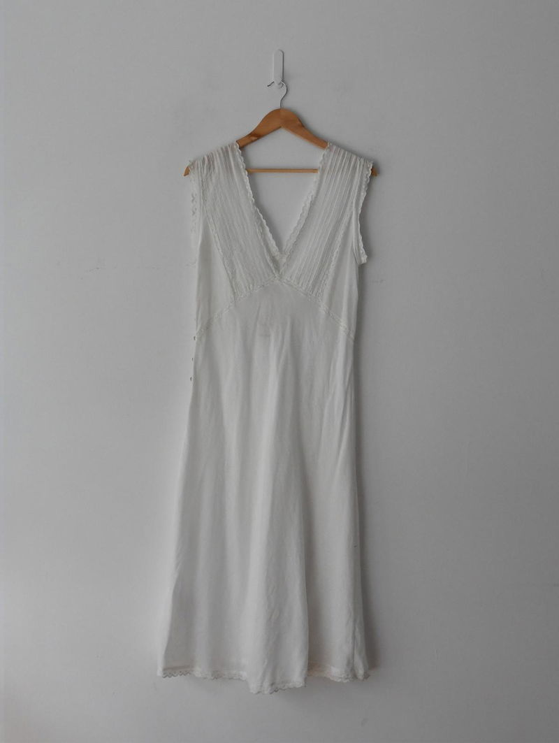 V Neck, V Back sleevless lace, cotton midi dress. Perfect when layered with an oversized jumper and chunky boots.