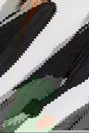 So delicate with lace all over, this stunning blouse is featured in a mock-neck style with ruffled accents and a billowy bodice.