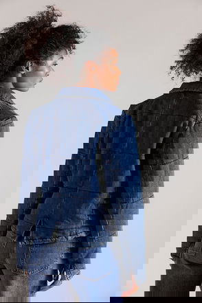 Not your average denim jacket: an oversized, utility-inspired silhouette gets a fun, funky touch with an oversized faux fur collar that will have everyone doing a double-take. This jackets offers the comfort of a classic denim jacket and the unmatched style of fur-adorned designs, combined to create THE perfect hybrid piece.