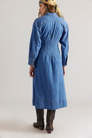 The perfect wear-everywhere midi featured in a soft chambray fabrication and shapeless silhouette with exaggerated patch-pocket detailing and adjustable shoulder straps.