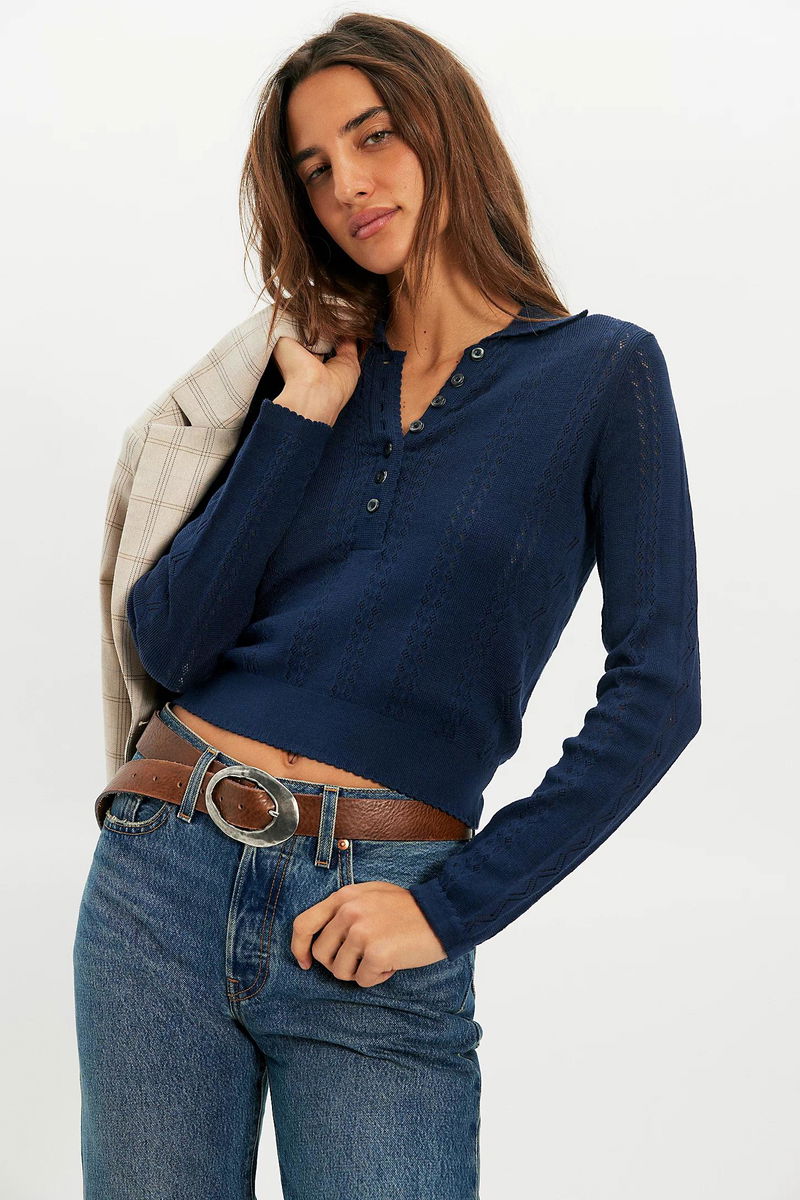 Shop More: Navy Clothing FREE PEOPLE Clothing FREE PEOPLE Tops Navy Tops FREE PEOPLE Navy Clothing