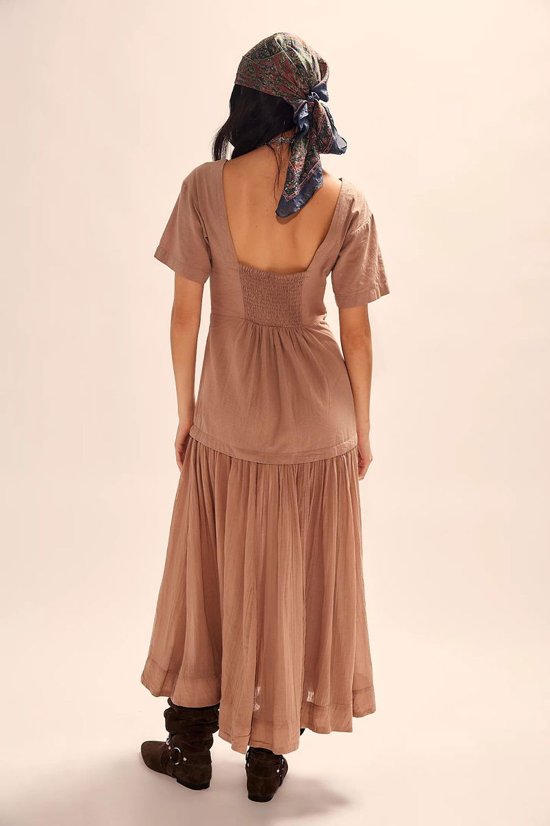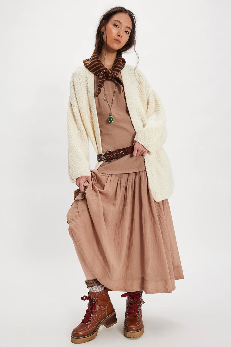 A unique two-in-one look, this midi dress from free-est features a tunic-like bodice and drop-waist skirt, all in a semi-sheer cotton fabrication for a totally breezy moment.