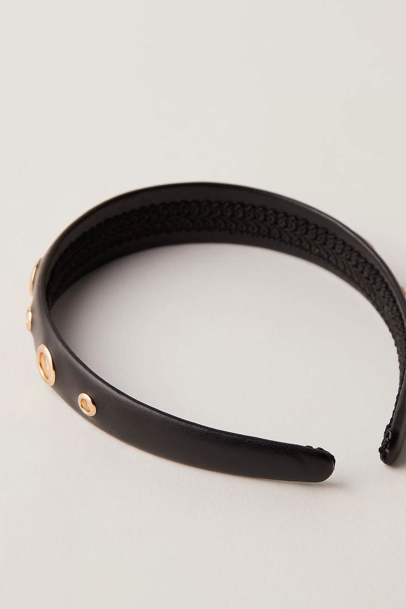 Add effortless edge to every look with this super cool hard headband featured in a luxe leather fabrication with defined rivet detailing for the perfect elevated touch.