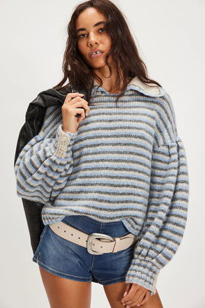 Cozy nights and festive feels, this slouchy sweater features a soft knit fabrication and an oversized, quarter-zip-inspired silhouette, creating the perfect laidback layer.