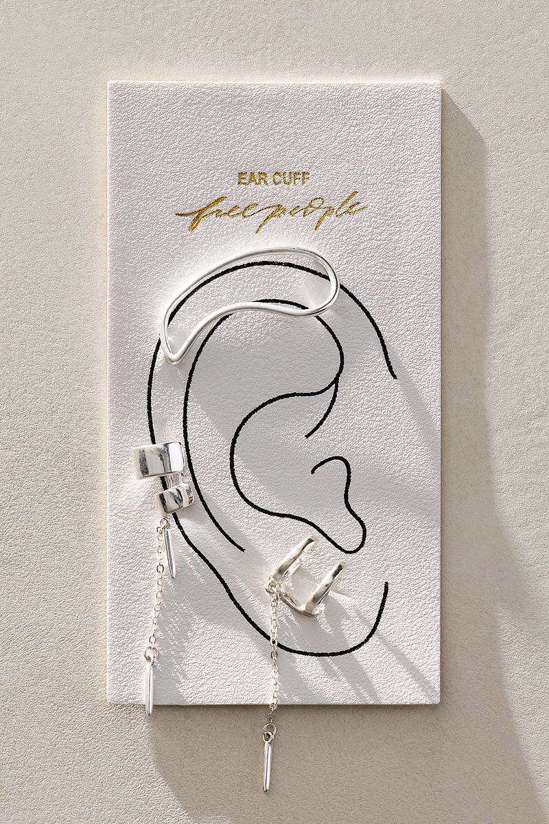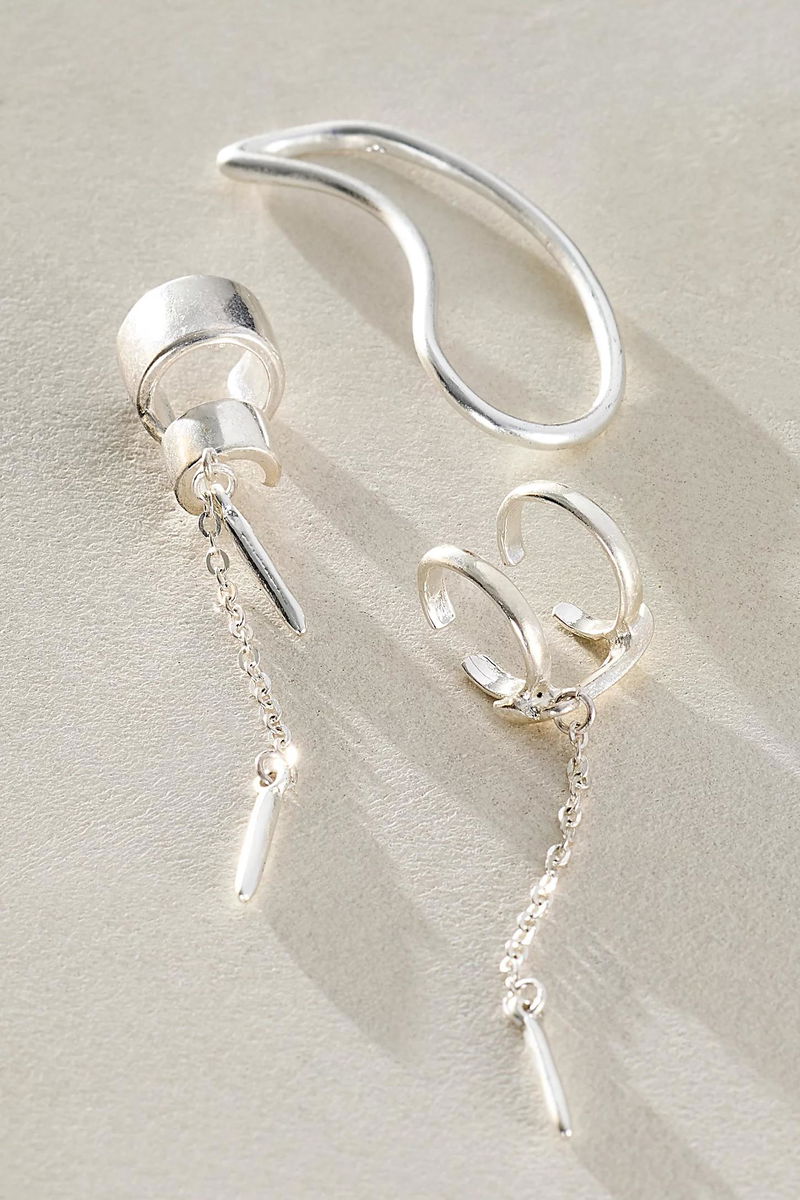 Add effortless edge to every look with this super cool ear cuff set featuring three metal styles in irregular shapes and sizes with dangly detailing for the perfect finishing touch.