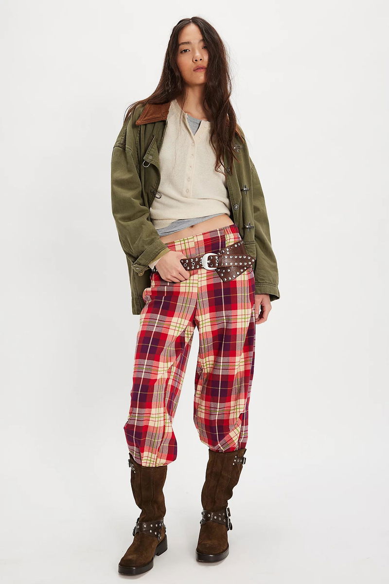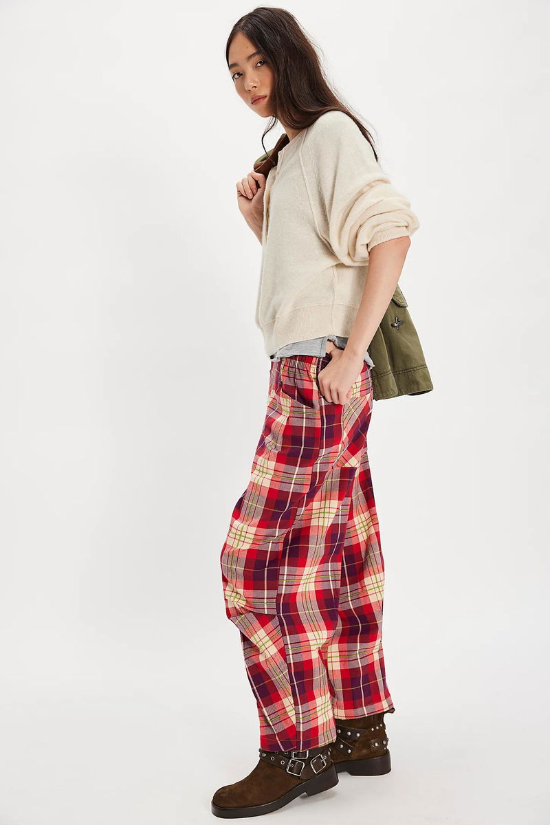 Perfect in plaid, these wear-everywhere pants feature an easy pull-on design with tucked pleating at the leg for added shape.