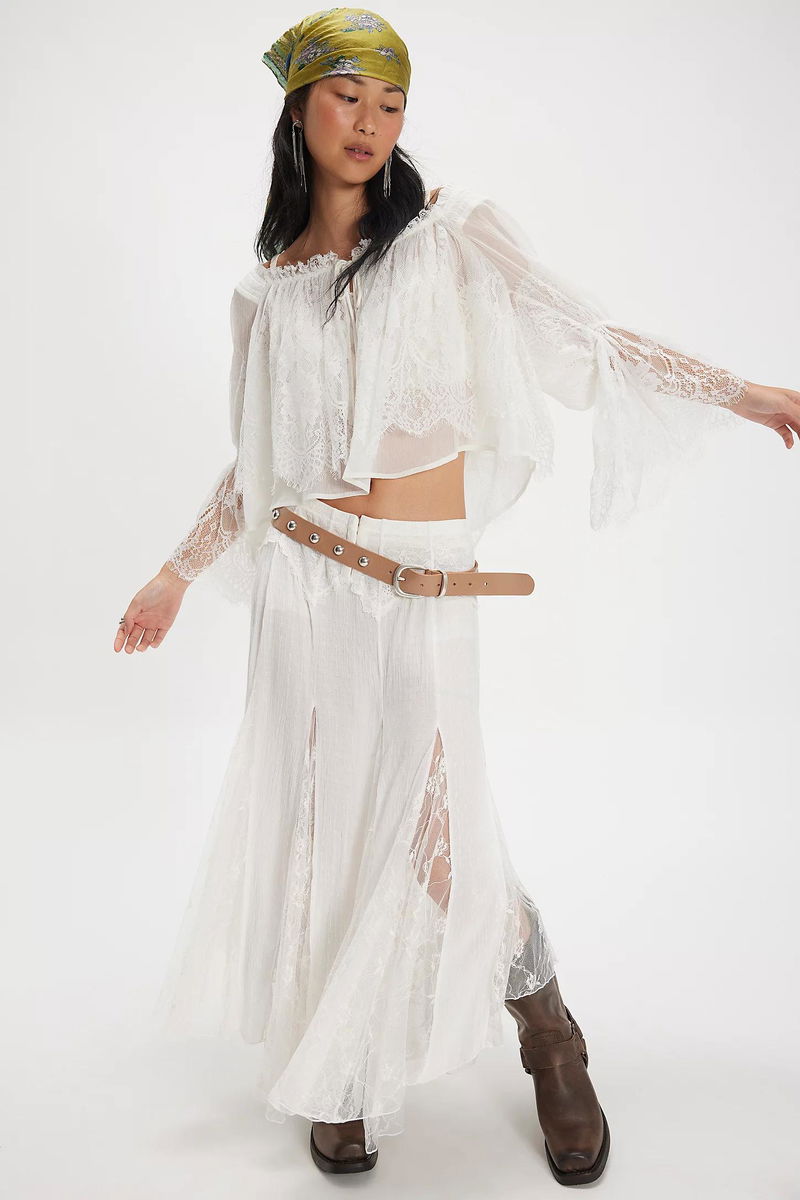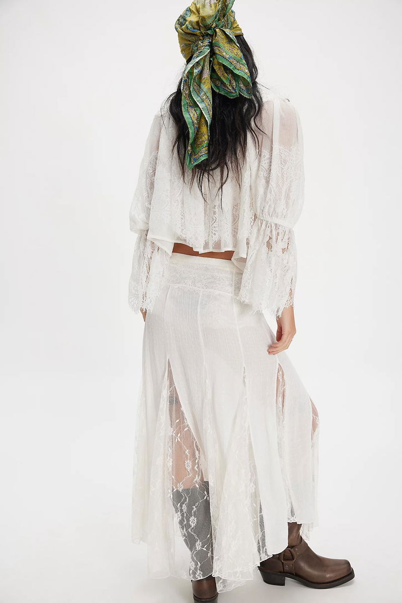 Mesmerizing and made to move with you, this maxi half slip from Intimately features a flowy silhouette that comes up at the sides, zigzag lace overlays at the waist, and sheer mesh panels for a captivating look, ready for your next festival or flea market run.