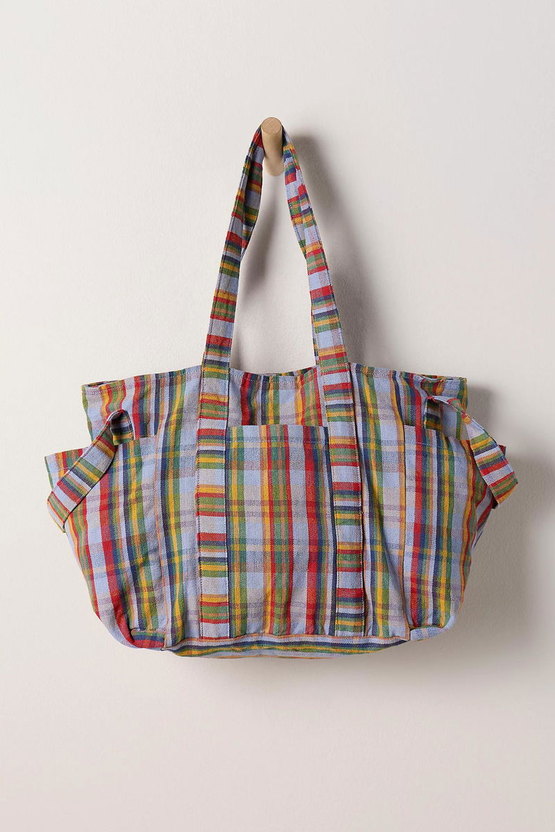 =Level up your tote collection with this super cool bag featured in an oversized style and staple square silhouette with defined pockets and colorful detailing throughout for the most effortless blend of fun and functional.