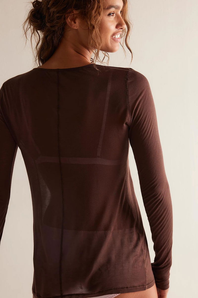 Semi-sheer and so-minimalist, this crew neck long sleeve from Intimately features a dreamy soft fabrication, long fitted sleeves, and raised seam details for an airy, essential style for layering or wearing individually.