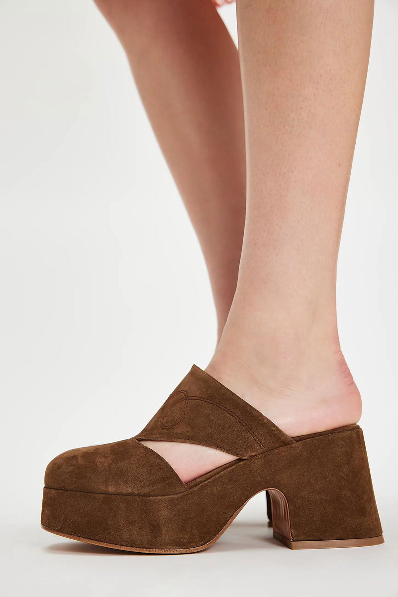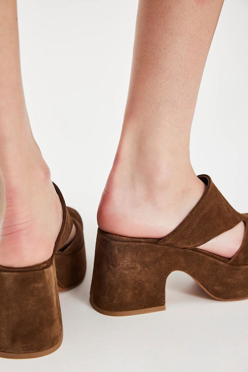 Slip into Western-inspired style with these platforms from FP Collection, featuring subtly distressed suede uppers, a backless, slip-on design, and cutouts for an added dimension.