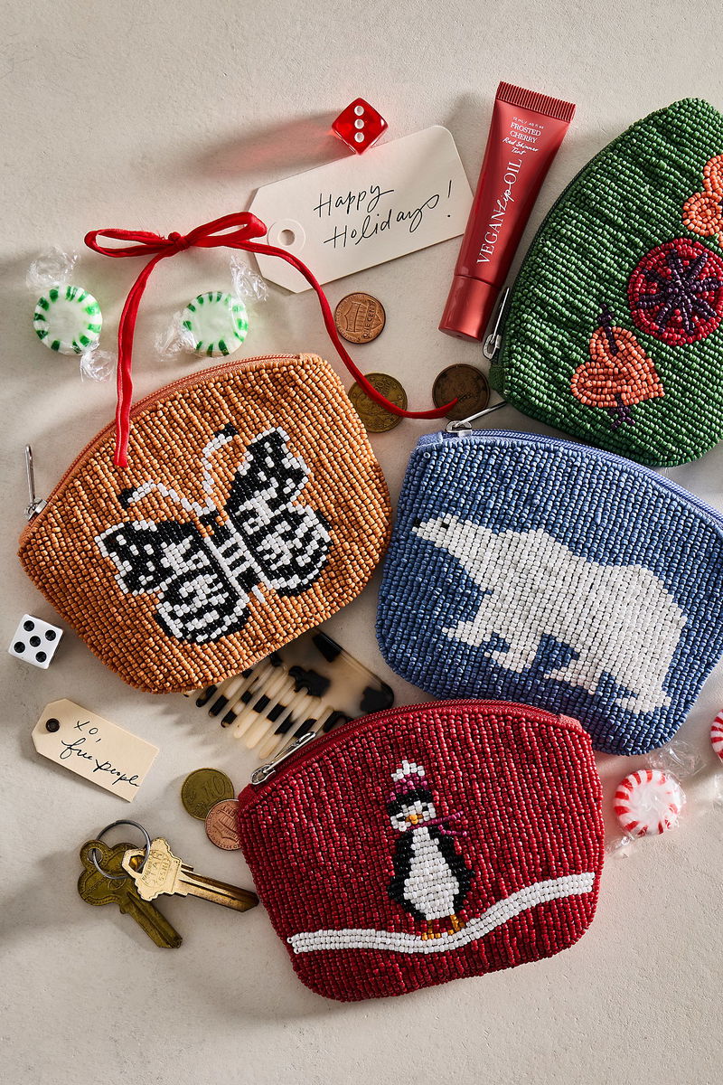 So cute and classic, this timeless coin purse is featured in a rounded silhouette with a fun beaded front for the ideal dimensional finish.