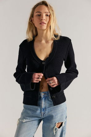 Perfectly oversized for endless layering, this relaxed cardi is featured in a comfy cotton blend with drop-shoulder sleeves, attached hood, and an unexpected button-front closure. Relaxed, oversized, mid-thigh length. Comfy cotton blend, brushed terry lining, attached hood with seamed trim, drop-shoulder sleeves, ribbed cuffs, button-front closure, zipper pocket at chest. Staying in or going out, this cardi is sure to keep you cozy wherever you go.